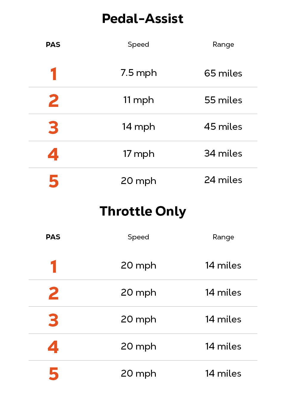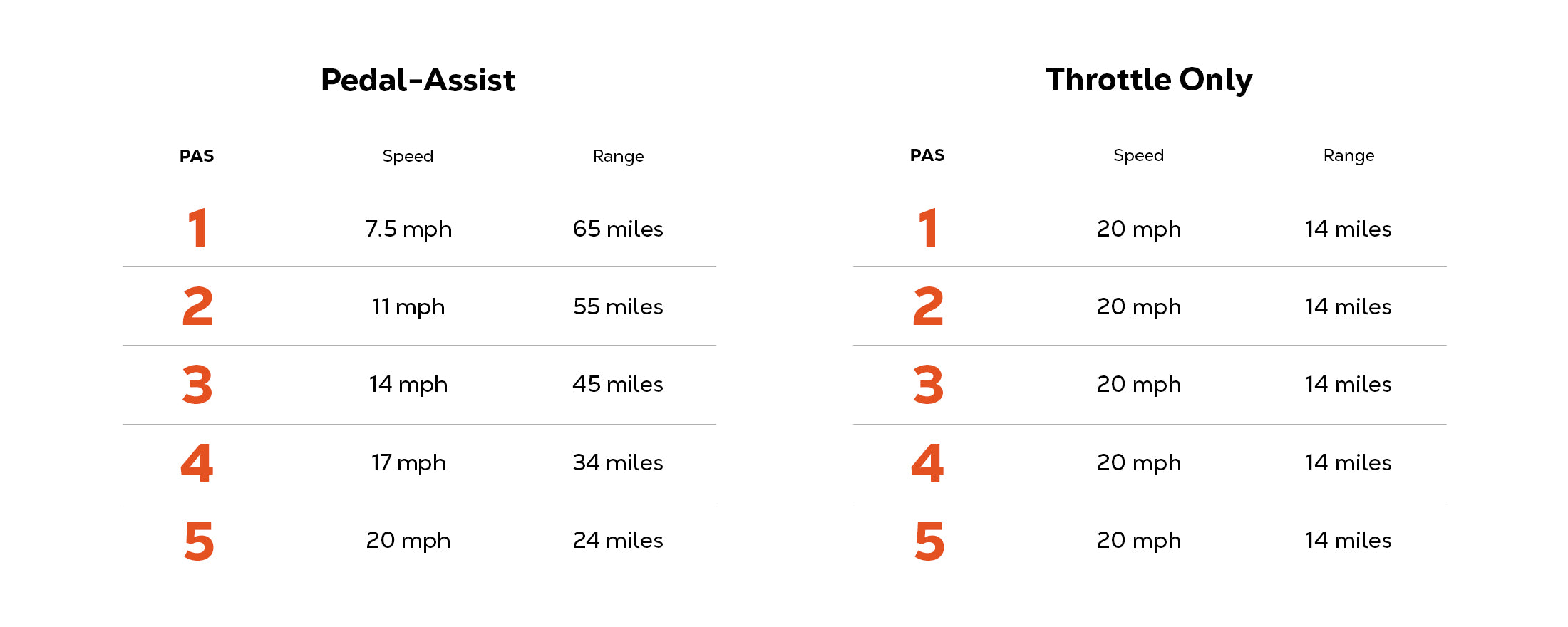 5 PAS Levels (7.5/11/14/17/20 mph)
