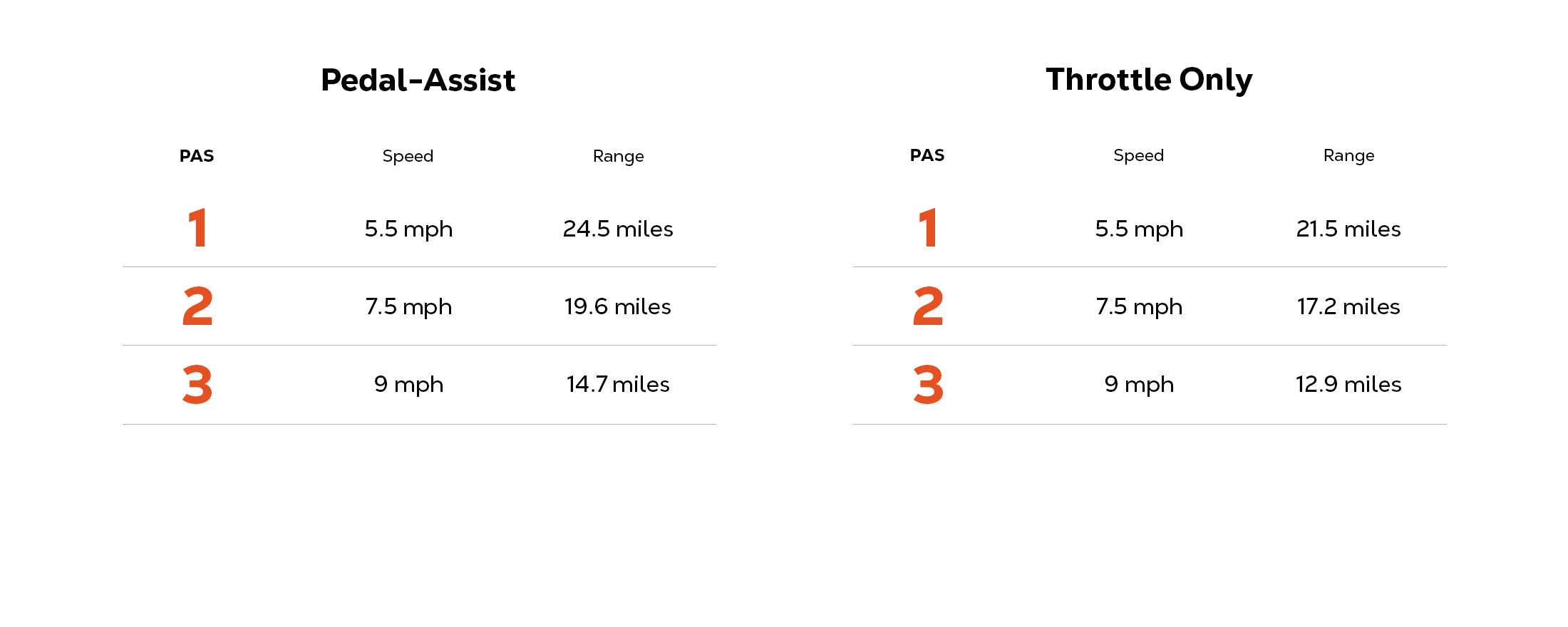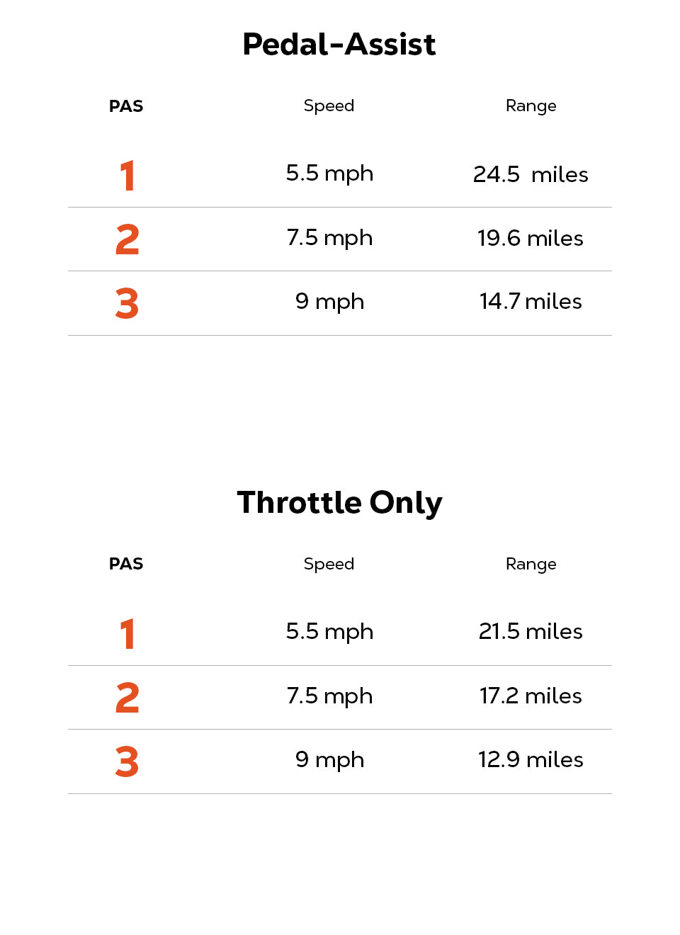 9 mph Max. Speed & 21.5 mi. Max. Travel