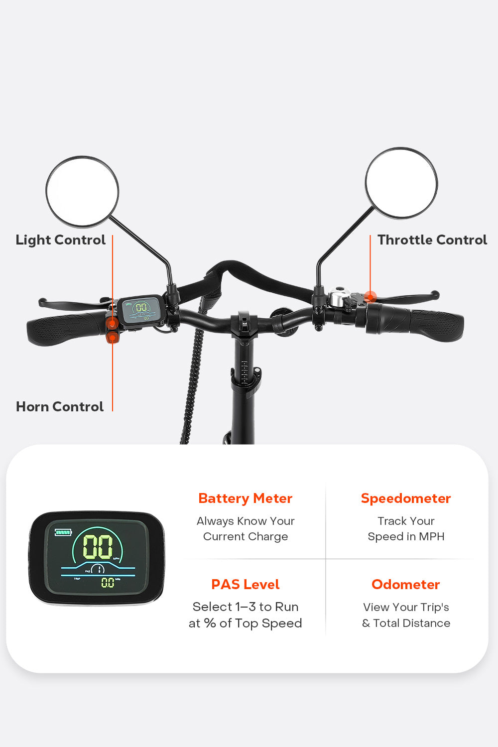 Enjoy a complete ride package – your electric tricycle comes with a lock, a pair of mirrors & a quick-release front basket! (All accessories included in the box)